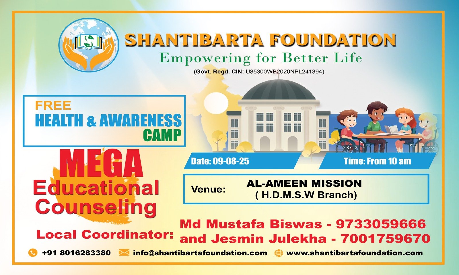 School Health Check-up & Mega Educational Counselling Camp on 9th & 10th August’ 2025 at AL-AMEEN ACADEMY, DUBRAJPUR AL-AMEEN MISSION, H.D.M.S.W Branch, AL-AMEEN BRILLIANT ACADEMY, SURI